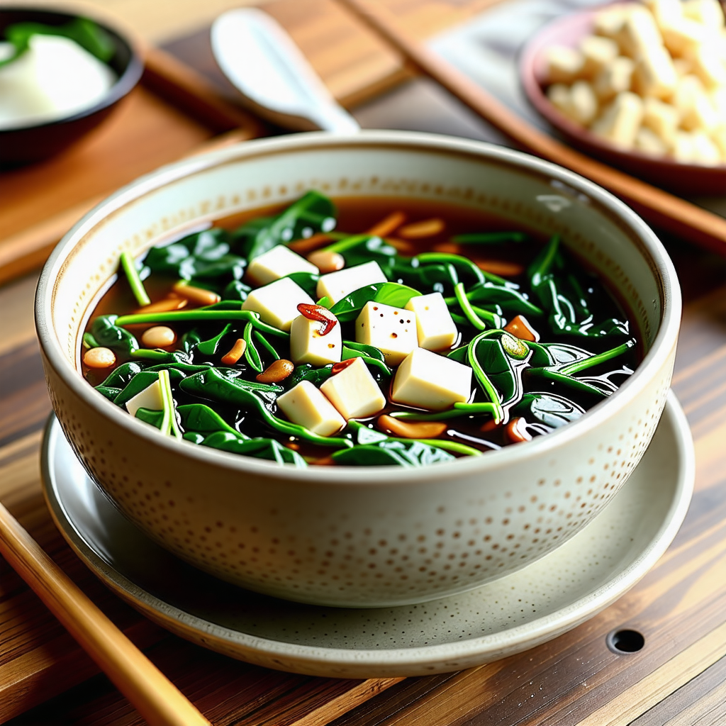 시금치 된장국은 시금치와 된장을 주재료로 하여 만든 국물 요리입니다. 이 국은 깊고 진한 맛을 자랑하며, 특히 한국 가정에서 자주 즐겨 먹는 음식 중 하나입니다. 시금치의 신선한 맛과 된장의 구수한 맛이 어우러져, 따뜻한 국물 한 그릇은 언제나 마음을 편안하게 해줍니다.